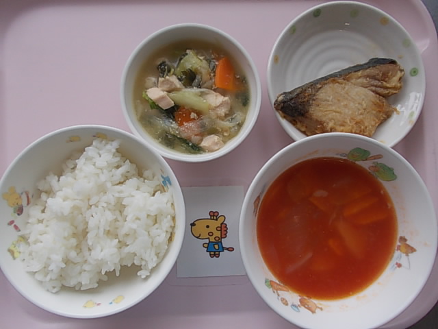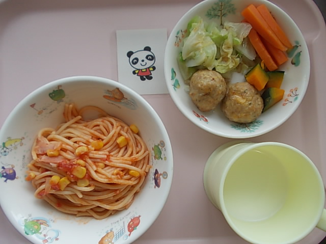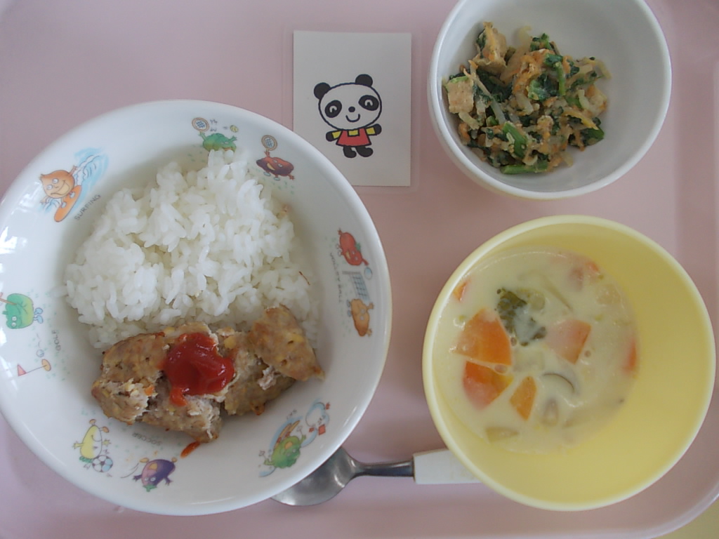 ビタミンや鉄分等のミネラルや カロリー等、バランスのよい献立を、調理員さんがひとつひとつ、心をこめて作っています。園の畑でとれた野菜や季節の食材をたっぷり使い、味つけはやさしく。